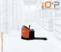 Plattform manuell hochklappbar, feste Seitenschutzwände mit schmalem Deichselgriff, kurzer Deichselarm, Servolenkung, 12,5 km/h Version, Gabelrollen Tandem, Stützrad Einfach- Premium, Antriebsrad - Premium, PIN-Code