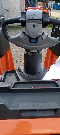 Plattform manuell hochklappbar, feste Seitenschutzwände mit schmalem Deichselgriff, kurzer Deichselarm, Servolenkung, 12,5 km/h Version, Gabelrollen Tandem, Stützrad Einfach- Premium, Antriebsrad - Premium, PIN-Code