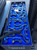 Panorama Panzerglasdach, seitlicher Wechsel mit Rollen, BlueSpot Fahrtricht.vorwärts, Schlüsselschalter, Doppelpedal, Zinken 20 mm über dem Boden, Zentralhebel-Betätigung LLC, Höhenverstellb. Bedienkonsole, Innenspiegel Pano rama, Leistungsstufe Efficiency, 48V/5PzM/775Ah+AQ Hawker