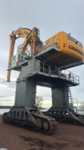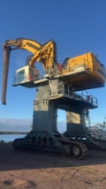 Used Liebherr LH120 for sale at Middeldorp Bouwmachines / WW Machinery This Liebherr is equipped with a powerful 400 kW diesel engine and is designed as a heavy-duty hydraulic material handler. It has a clearance height of 4.7 meters and a width between the legs of 4.6 meters , making it suitable for heavy-duty industrial material handling applications.