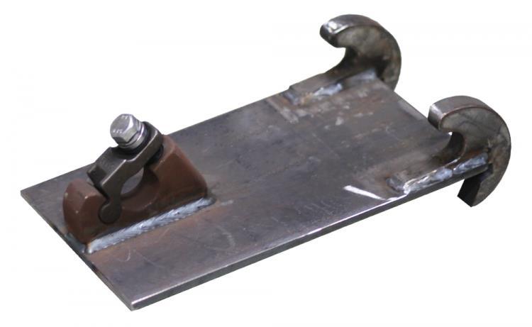 Ophængsplade til skovl eller redskab lang model Beco snap A, CC. mål 330mm - krog Ø40mm.