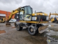 Wheeled excavator in working condition.