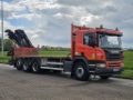 Number of axles: 4, Configuration: 8x4, Total fuel capacity: 300 litre, fifth-wheel: Fixed, Diff. locks: 2, Suspension type: air suspension, Cabin type: Short cabin, Cruise control, Tacho, Digital tachograph, Airconditioning, Electric windows, Electric mirrors, Radio/cassette, Color: Orange, Heated mirrors, Reversing camera, Lighting type: Halogen lamps, Laneassist, Bluetooth, Flashing lights, Engine capacity: 301 Kw (404 Hp), Fuel type: diesel, Euro: 6, Gearbox kind: Opti-cruise, Gearbox make: Scania, Number of Gears: 12, Add. break system, Retarder make: Scania, Power steering, ABS, ASR, PTO, PTO type: 1, Starter battery, Pump, Central locking, Seats configuration: 1+1, Seat cover: cloth, Chair adjustment: Manually, Crane, Crane make: Hiab X-HIDUO 258, Crane position: Rear position, HIAB 258EP5