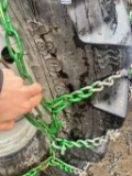 Traktoren er utstyrt med Trima frontlaster. Følger også med tvillinghjul og skjermer fram.