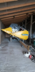 Varifeed pjaunamoji 5,5 m. su integruotu rapso stalu (du viename - nereikia jokių papildomų skardų - valdomas išstumimas iš kabinos) rapso atpjovėjai ir vežimėlis pjaunamajai.